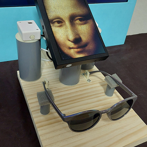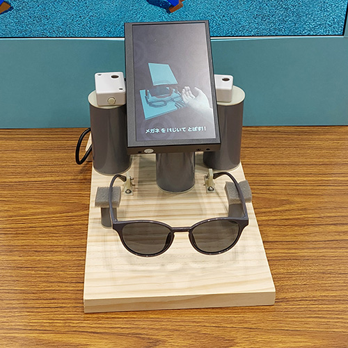 サブディスプレイの絵画に眼鏡をかける遊びを取り入れました。