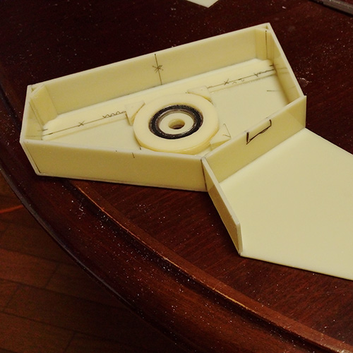 軽さと強度を考慮して制作。回転軸には大き目のベアリングを使用。